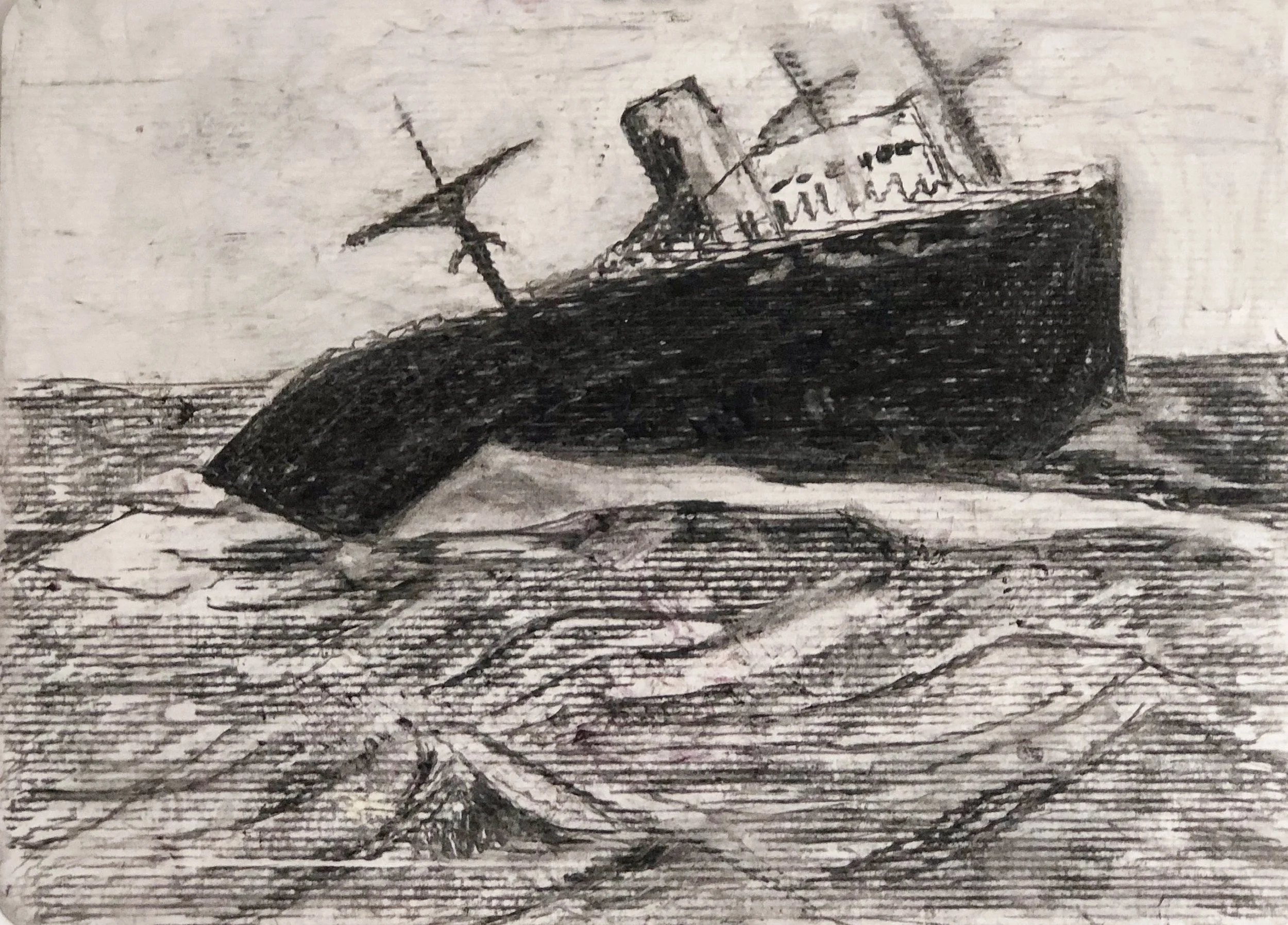 Stormy sea, 2021. Charcoal on cardboard - 27,5 x 32,5 cm.